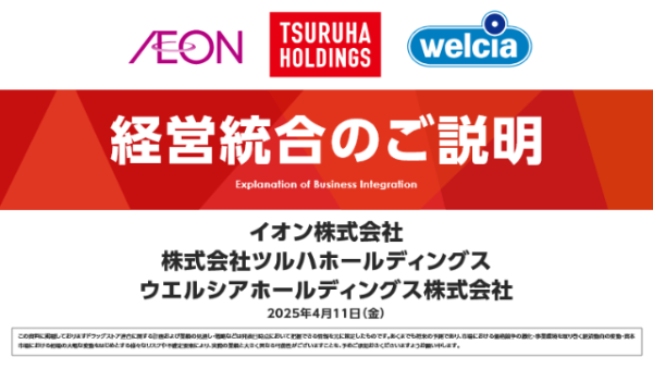 ツルハ・ウエルシアが当初2027年としていた経営統合を 2年間前倒して、年内に新たな大規模ドラッグストアグループが誕生すると開示されたためですね。